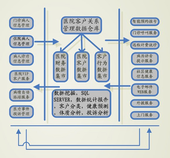 医院客户关系管理 Hospital Customer Relationship Management , HCRM , 是借鉴企业 CRM 管理经验、服务理念 , 融入医院经营理念、业务流程、市场营销策略和客户服务等建立起来的以医院客户为中心的管理体系。其目的是维持和保留现有客户 , 吸引潜在客户 , 培育并扩大忠诚客户队伍 , 获得客户的终身价值 , 提高医院的核心竞争力 , 实现医院社会效益和经济效益的双赢。